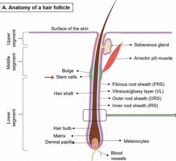 →   stem cells が多いのはバルジ領域
